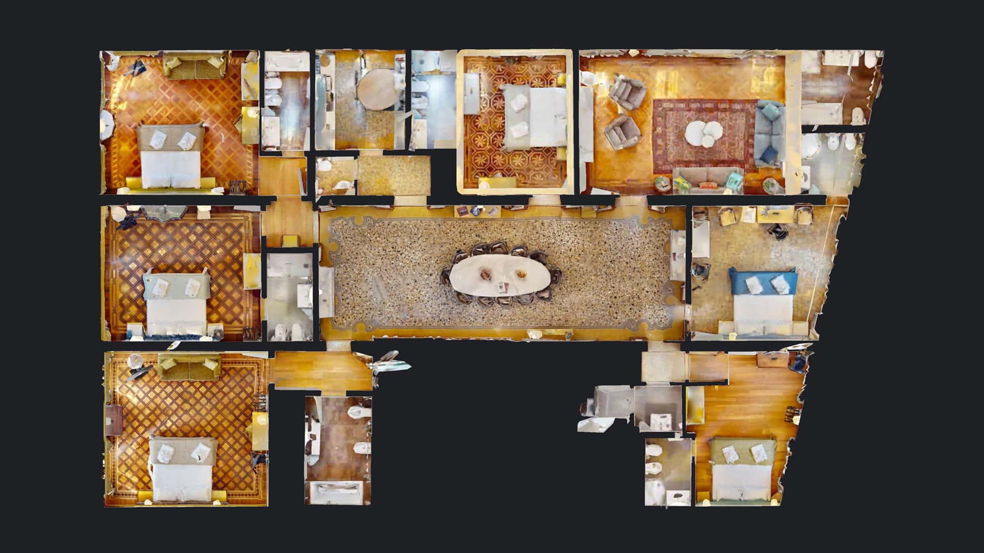 This large apartment has been newly restored and has 6 bedrooms and 6 and a half bathrooms. A large living room with a dining table that can host 12 persons, The Living room is extended by a nice terrace with a patio. The name of the house is determined by a large Wisteria that it intertwines with the pillars of the Patio. The furniture are modern with some items that recall the antique history of Venice and the heritage of Italian culture. The kitchen is fully equipped and the entrance to the building is private with lots of storage space for luggage and strollers. It is a perfect location for a family reunion or for an extended family enjoying the “Grand Tour” in Italy It has a washer and a separate dryer in a dedicated laundry space. Air conditioning system in every room and central heating. We look forward to host you in this magnificent house that combine privacy quiet neighborhood and the perfect location for enjoying local cuisine and amenities that are at walking distance . The proximity to Fondamente Nuove allows our guests to arrive with any public or private boat service and it is ideal for starting the tour on the islands of the Lagoon.