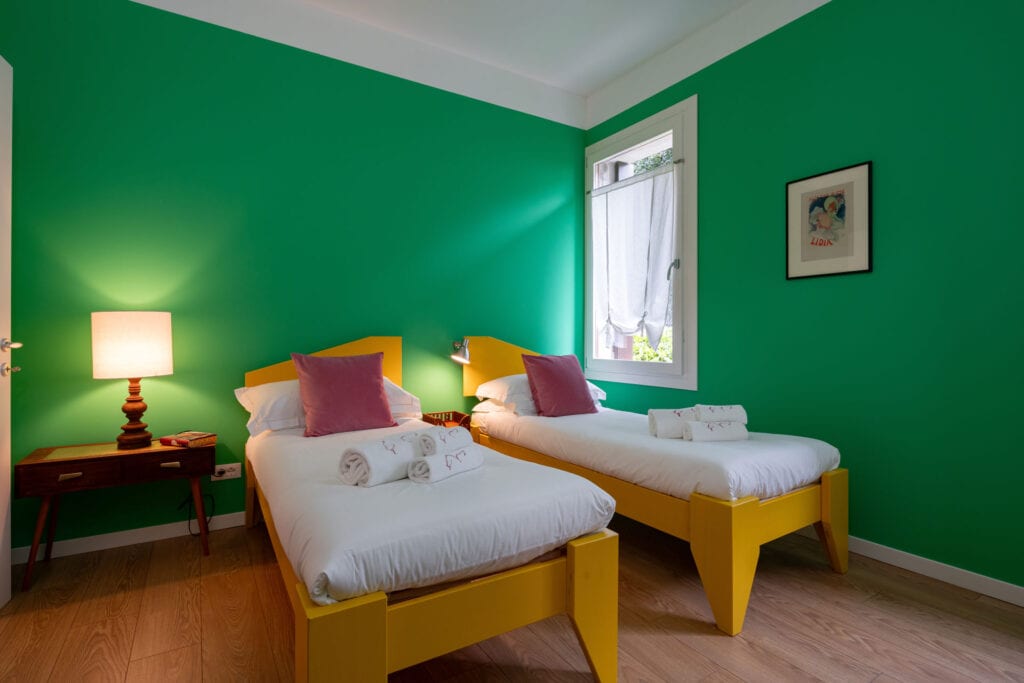This apartment is located in Santa Marta area within Dorsoduro district in Venice. Old backyard of the commercial docks now a vibrant university area and full of nice bars. Positioned on a side of the canal of “Rio delle Terese” and near the “Ponte Longo di Santa Marta”. It is a garden apartment with tree double bedrooms and two bathrooms. The garden goes around the flat that is just few steps above the street level.