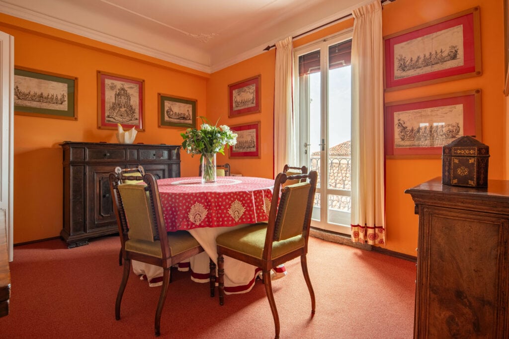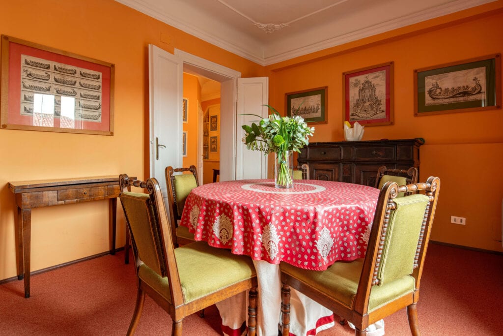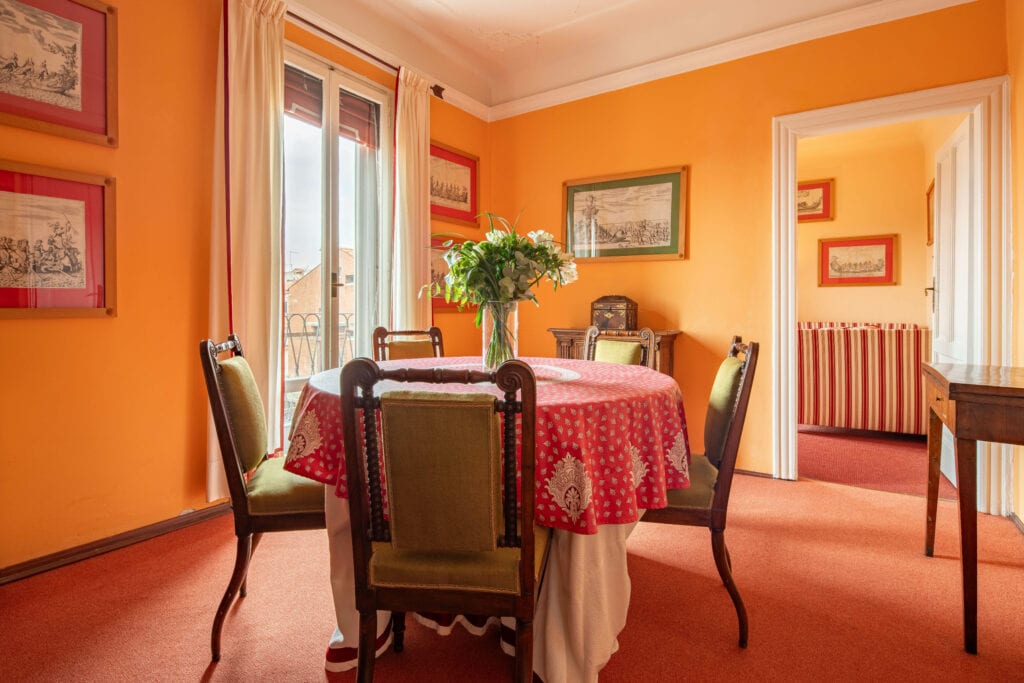 This apartment is located in Dorsoduro, in the Salute and Accademia area. It is a very quiet neighbourhood and it is well served by transport and close to groceries. Casa Golena is composed of 2 double bedrooms, a single bedroom, two full bathrooms, a living room, a dining room, a family kitchen and a terrace. It is a third floor with no lift and extremely bright. The stairs have hand rails and they are large and not too steep. The apartment has been the home of an admiral and his descendants for about 100 years. Nicely decorated it is full of antique prints an, paintings and models of ships from all over the world. The windows face the “Magazzini del Sale” where there are is the permanent exhibition of Emilio Vedova artworks, the Famous Bucintoro rowing club and many spaces dedicated to exhibitions and cultural events. From the apartment’s windows it is also visible the “Canale della Giudecca” and behind it the Giudecca itself and the Venetian lagoon. Casa Golena is near the Guggenheim Collection and the Church of “Madonna della Salute” about 100 meters from the famous promenade “Zattere”. The apartment is fully equipped with kitchenware, air conditioning, internet Wi-Fi and heating. We provide towels and linen and the prices are all inclusive a part from the tourist’s tax.