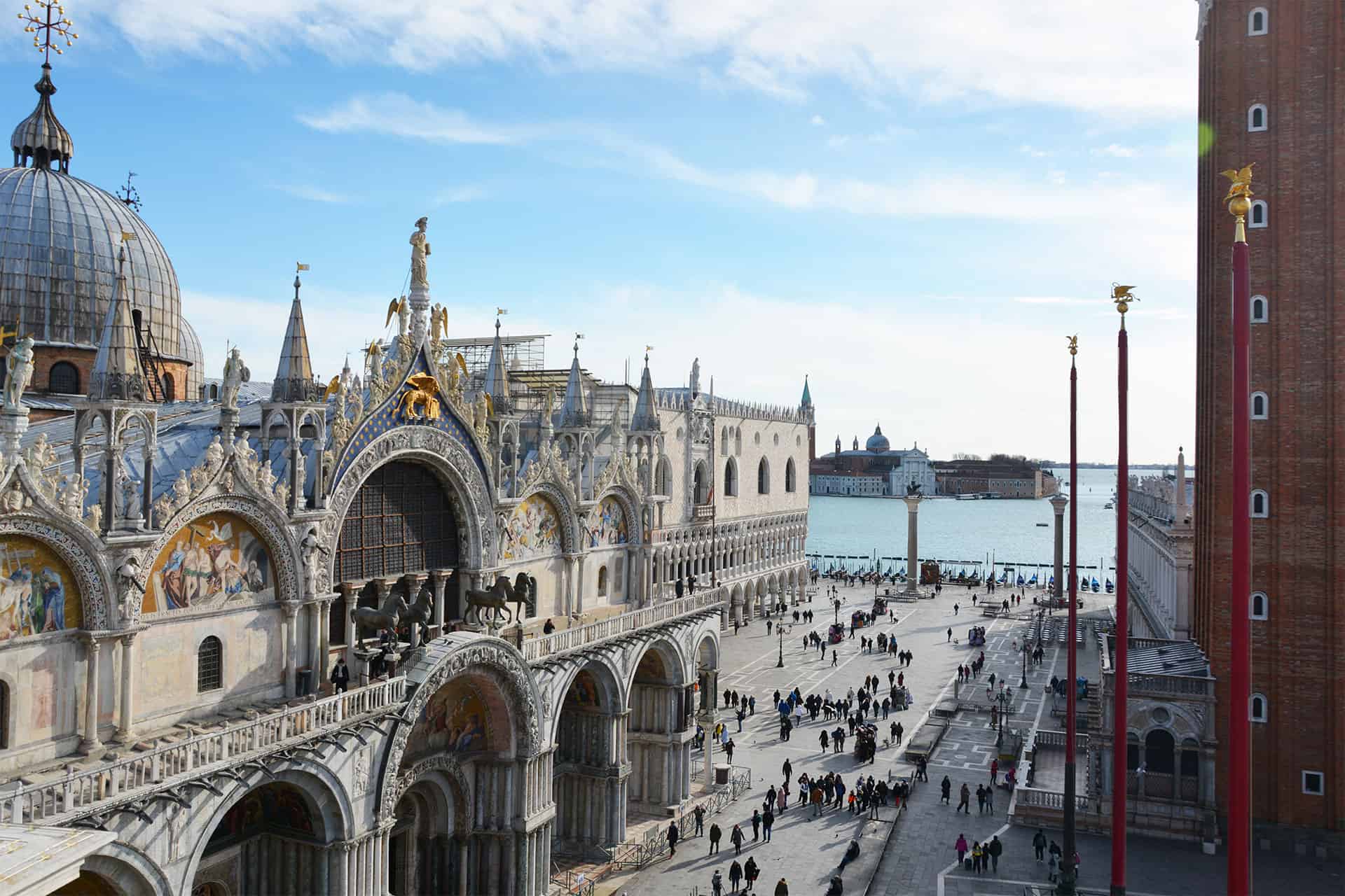 Venise a six quartiers appelés “sestieri”. Le sestiere de San Marco embrasse trois des points symbole de la ville: du ponte dell’Accademia au ponte di Rialto jusqu’à la place la plus célèbre du monde, et l’unique de l’île: Piazza San Marco. Sur cette place, se trouvent certains des monuments les plus beaux et les plus photographiés: la splendide Basilique de San Marco, richement décorée de mosaïques et de colonnes byzantines, l’élégant Palazzo Ducale qui donne sur le Bacino di San Marco et l’imposant Campanile d’où on peut admirer une des vues les plus belles sur les toits de la ville.