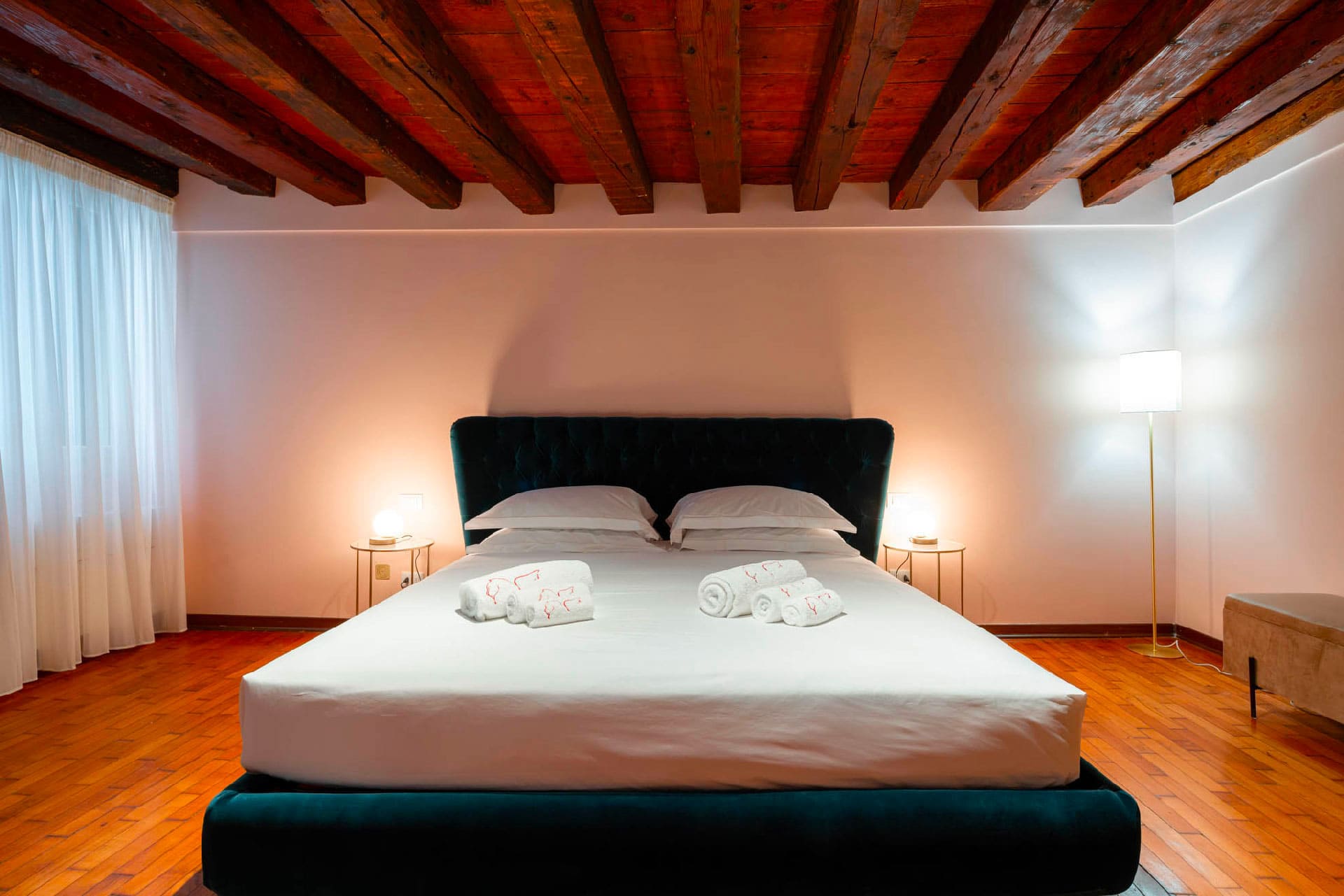 Poutres en bois, meubles sur mesure et certains meubles anciens se marient parfaitement pour une véritable expérience dans les maisons de style vénitien.