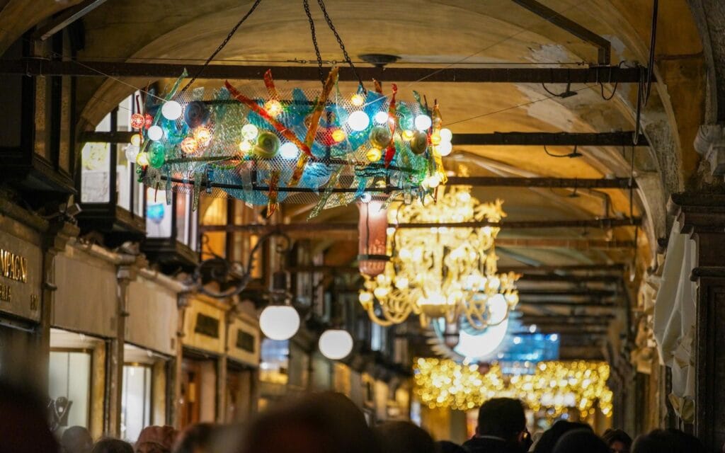À partir de là, Saint-Marc devient l’écrin idéal d’un mois de décembre fait de choses simples, mais mémorables : s’arrêter quelques minutes pour écouter un chœur, traverser la place, puis se laisser glisser vers le Rialto sans itinéraire imposé, en empruntant des calli plus discrètes et en retrouvant, au détour d’un passage, des perspectives familières qui, sous les illuminations, semblent soudain nouvelles.