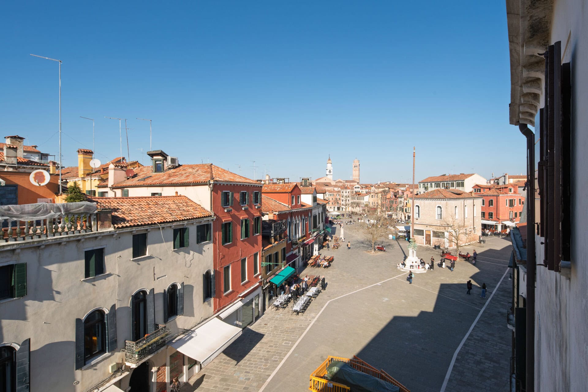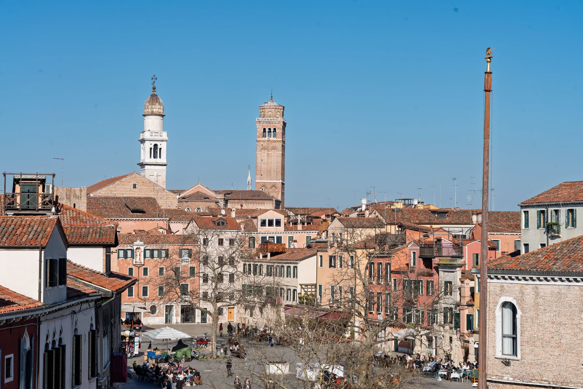 Campo Santa Margherita si trova nel sestiere di Dorsoduro, una delle zone più affascinanti di Venezia. Questo ampio campo è tra i luoghi di ritrovo più amati della città, frequentato da giovani universitari, residenti e visitatori. Di giorno è animato dai banchi della pescheria e dei fruttivendoli, dai bambini che giocano e dagli anziani che si rilassano sulle panchine, mentre la sera si trasforma in uno dei punti più vivaci della vita notturna veneziana. Tra bacari e locali storici, Campo Santa Margherita è il posto perfetto per ritrovarsi, fare nuove amicizie e godersi l’atmosfera unica della città. La posizione è strategica: a pochi passi si trovano il Ponte dell’Accademia e le Zattere con la loro splendida vista sulla laguna. Inoltre, grazie alla vicinissima fermata del vaporetto Ca’ Rezzonico, il Ponte di Rialto e molte altre destinazioni sono facilmente raggiungibili in pochi minuti di navigazione.