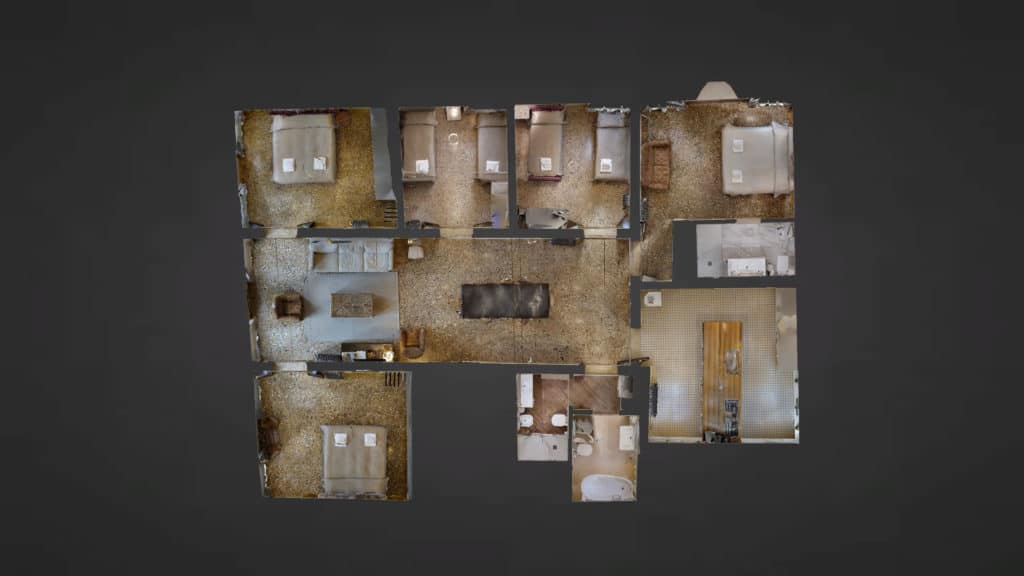 Le camere da letto si trovano tutte lungo la zona giorno. La camera da letto padronale ha un bagno privato con cabina doccia e le altre 2 camere matrimoniali possono essere trasformate in camere a due letti separati. Ci sono altre 2 camere da letto con letto singolo, ma in ognuna può essere aggiunto un letto extra. Due dei 3 bagni, ristrutturati recentemente, sono dotati uno di un’elegante vasca e l’altro di una comoda cabina doccia.