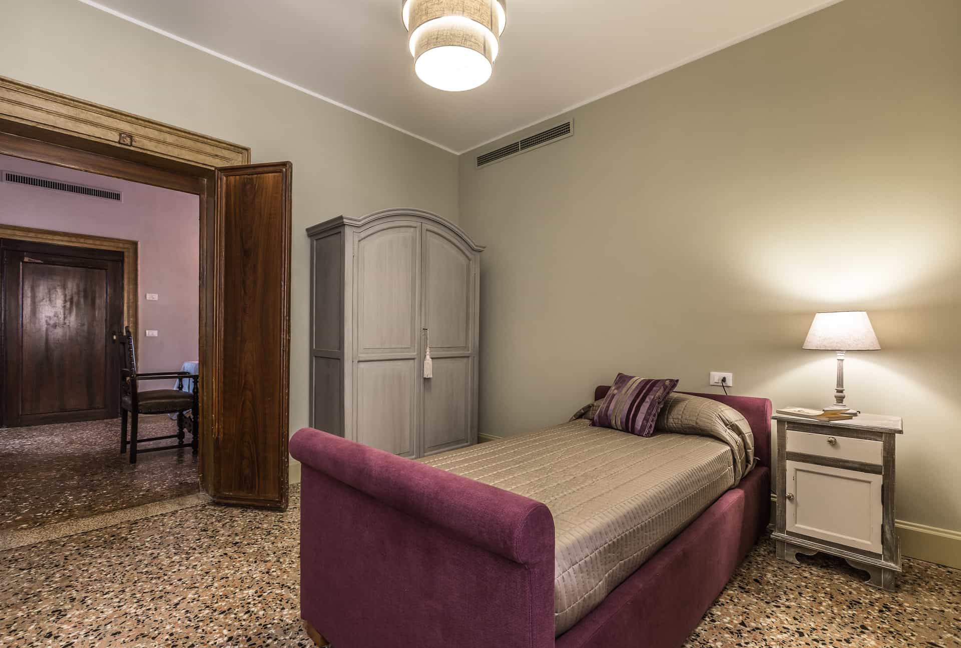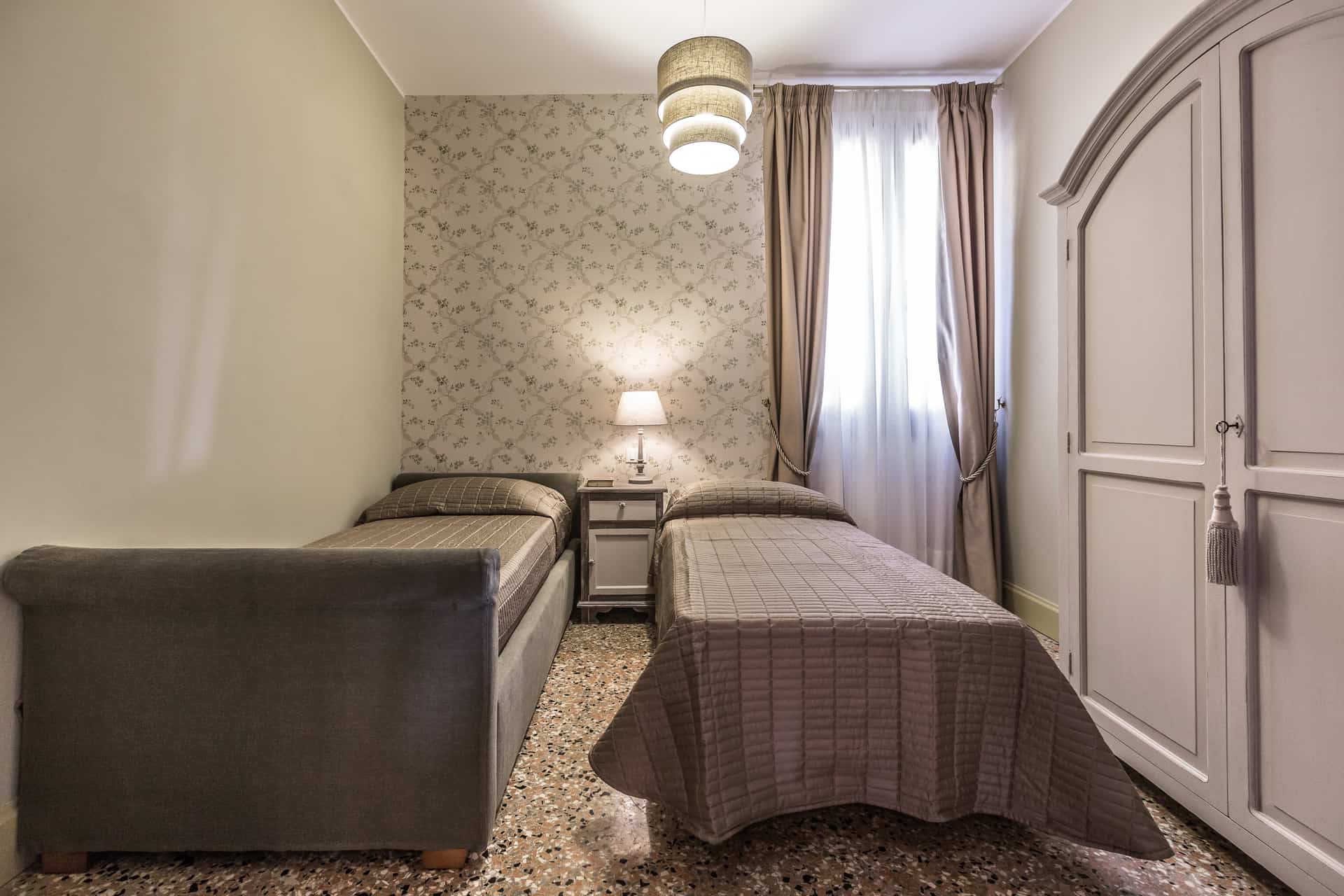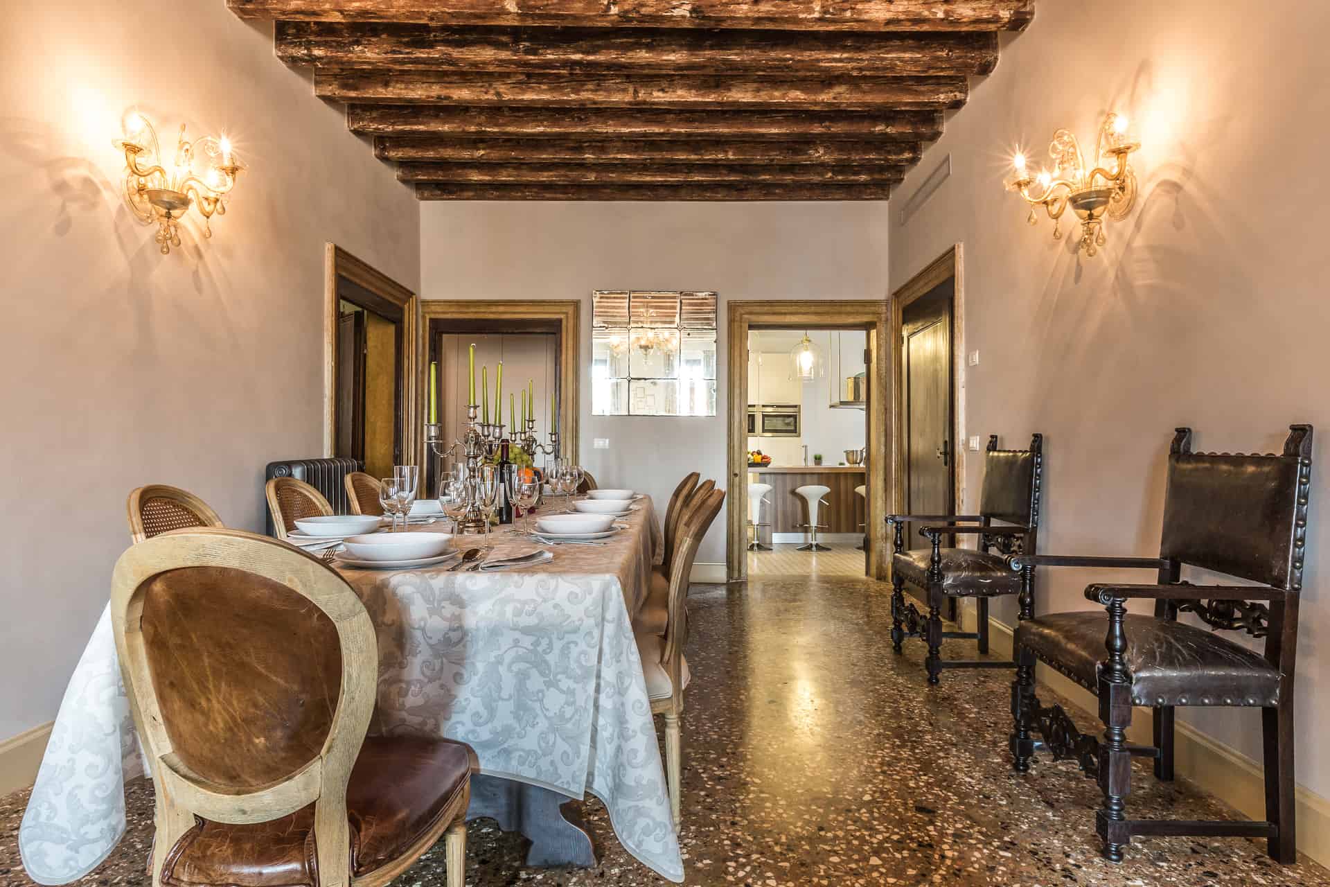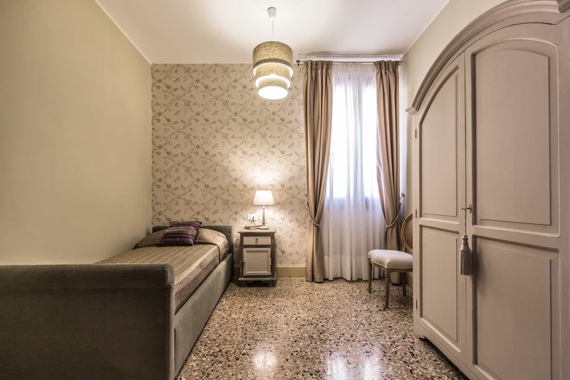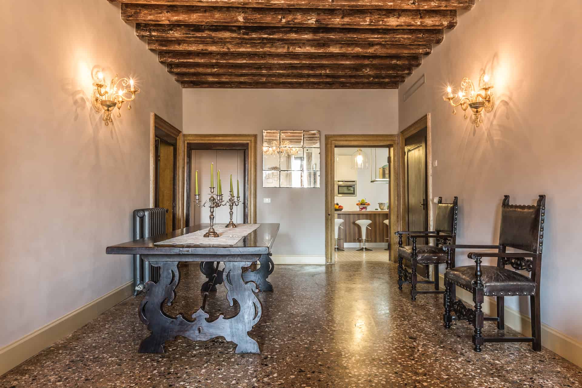 L’appartamento presenta dettagli tipici dei palazzi veneziani, ristrutturato con scelte moderne nell’arredamento delle camere e dettagli eleganti mescolando antiquariato e modernariato.